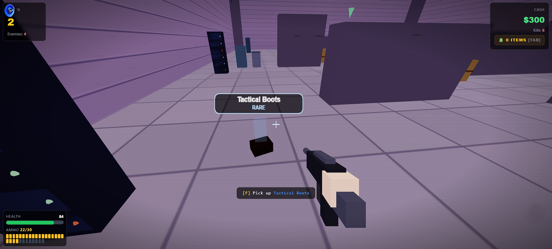 - Vertical FPS Progression: Fight through endless floors, using stairs to reach higher, harder challenges.